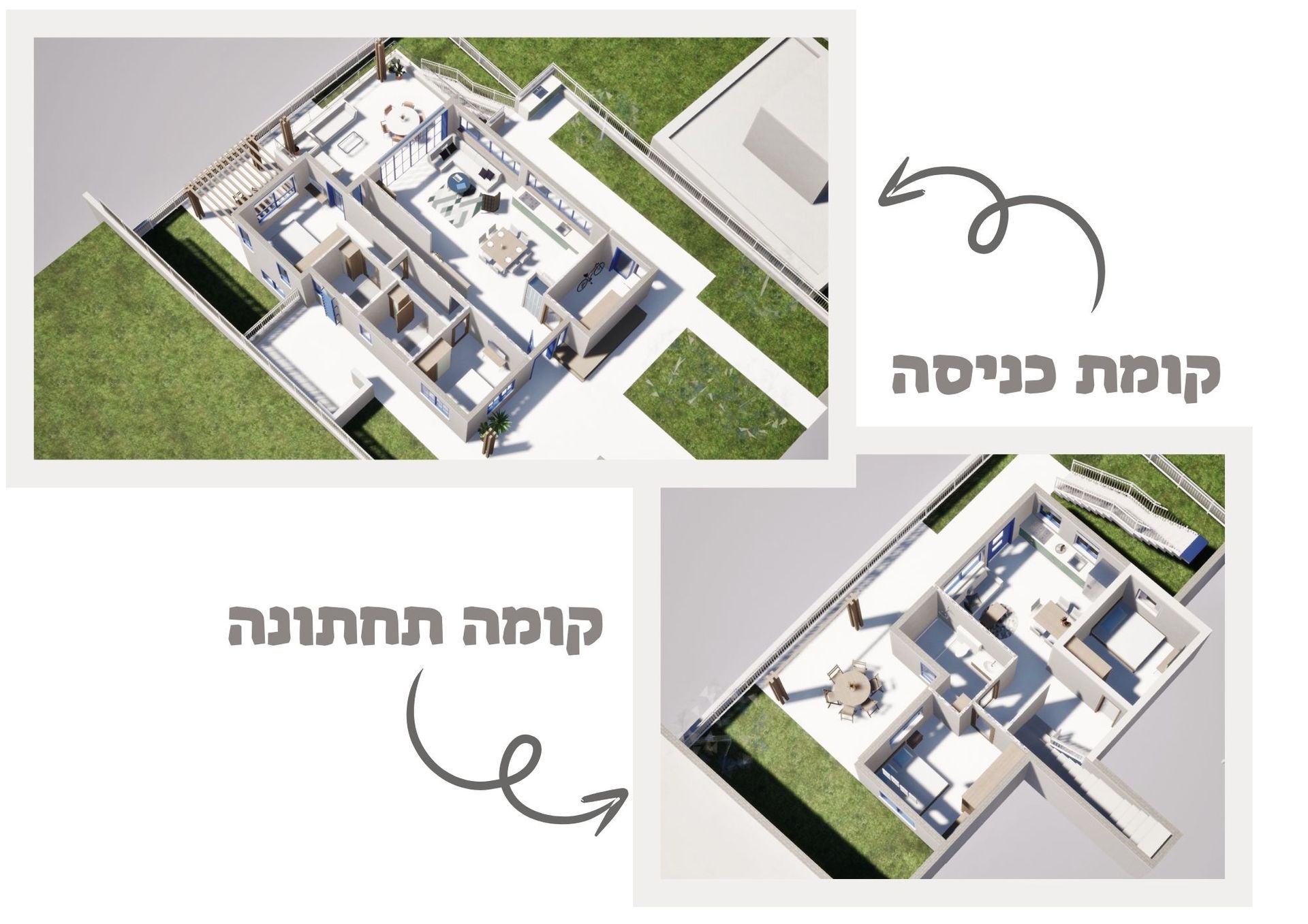 הבית תוכנן כך שיתאים למשפחה של זוג+שלושה ילדים מתבגרים-חיילים בשנים הקרובות, עם בית ראשי מרווח ומפנק ויחידה מאובזרת לילדים בקומה התחתונה. התכנון מאפשר גם את התפתחות המשפחה - כאשר בהמשך הבית יהיה אידאלי לזוג בלבד בחיי היומיום עם ילדים עם משפחות משלהם שבאים לביקור.