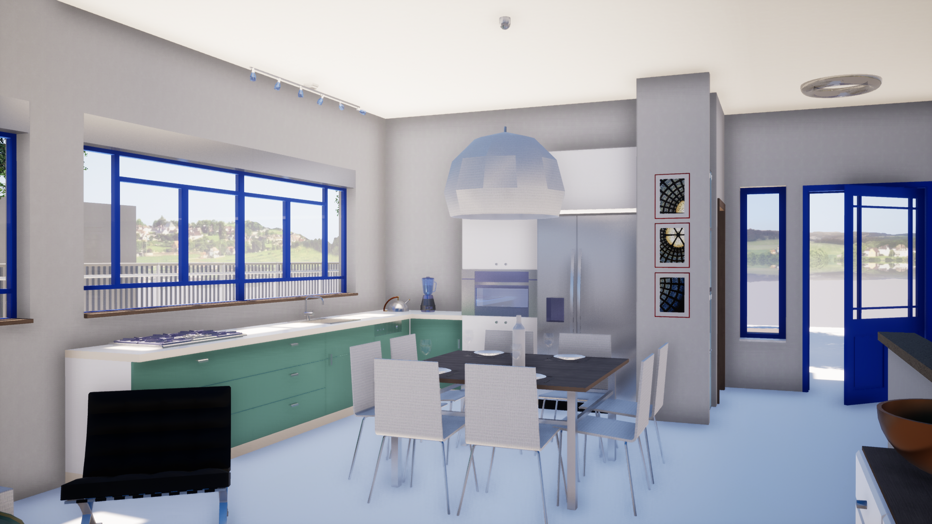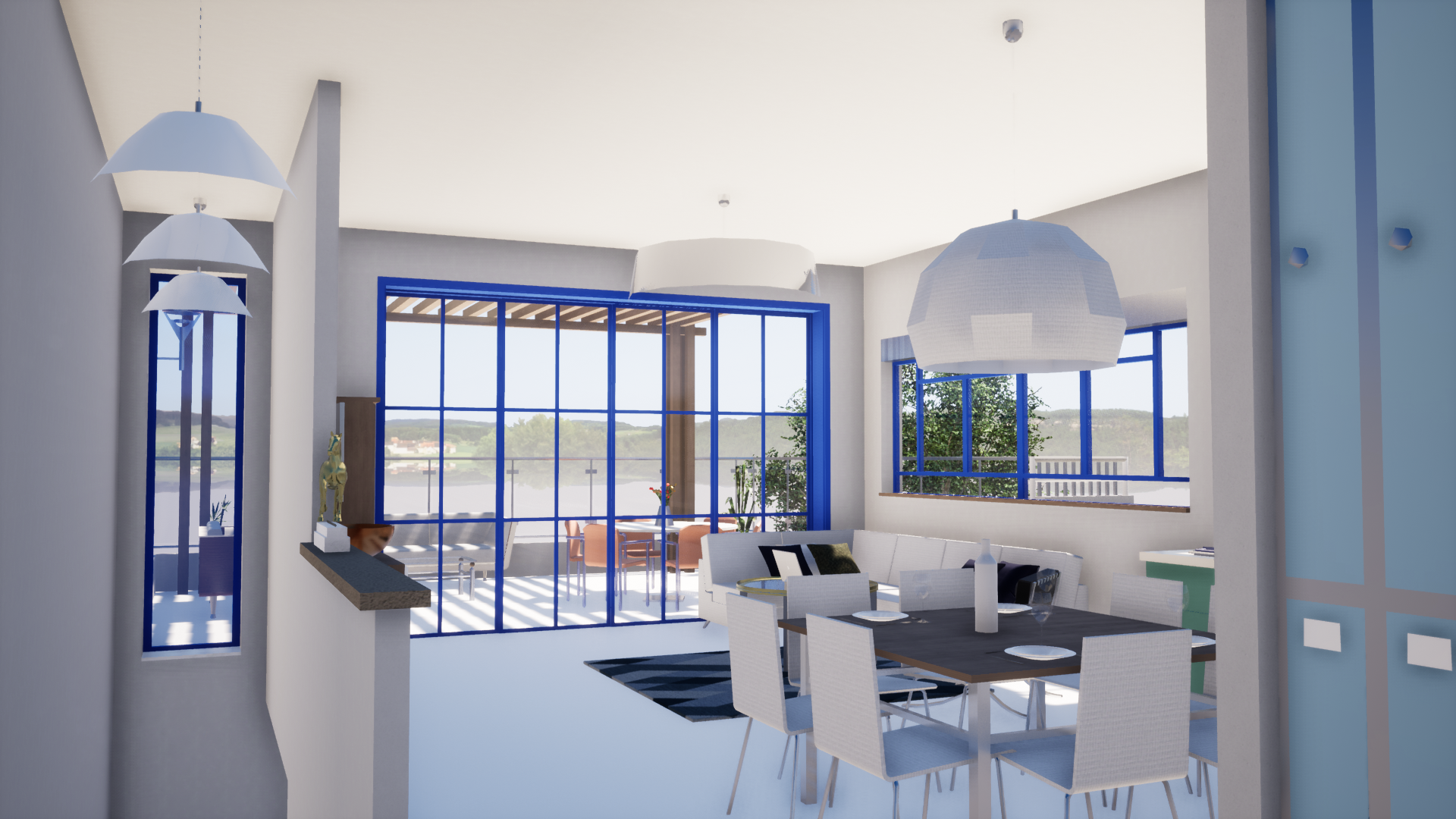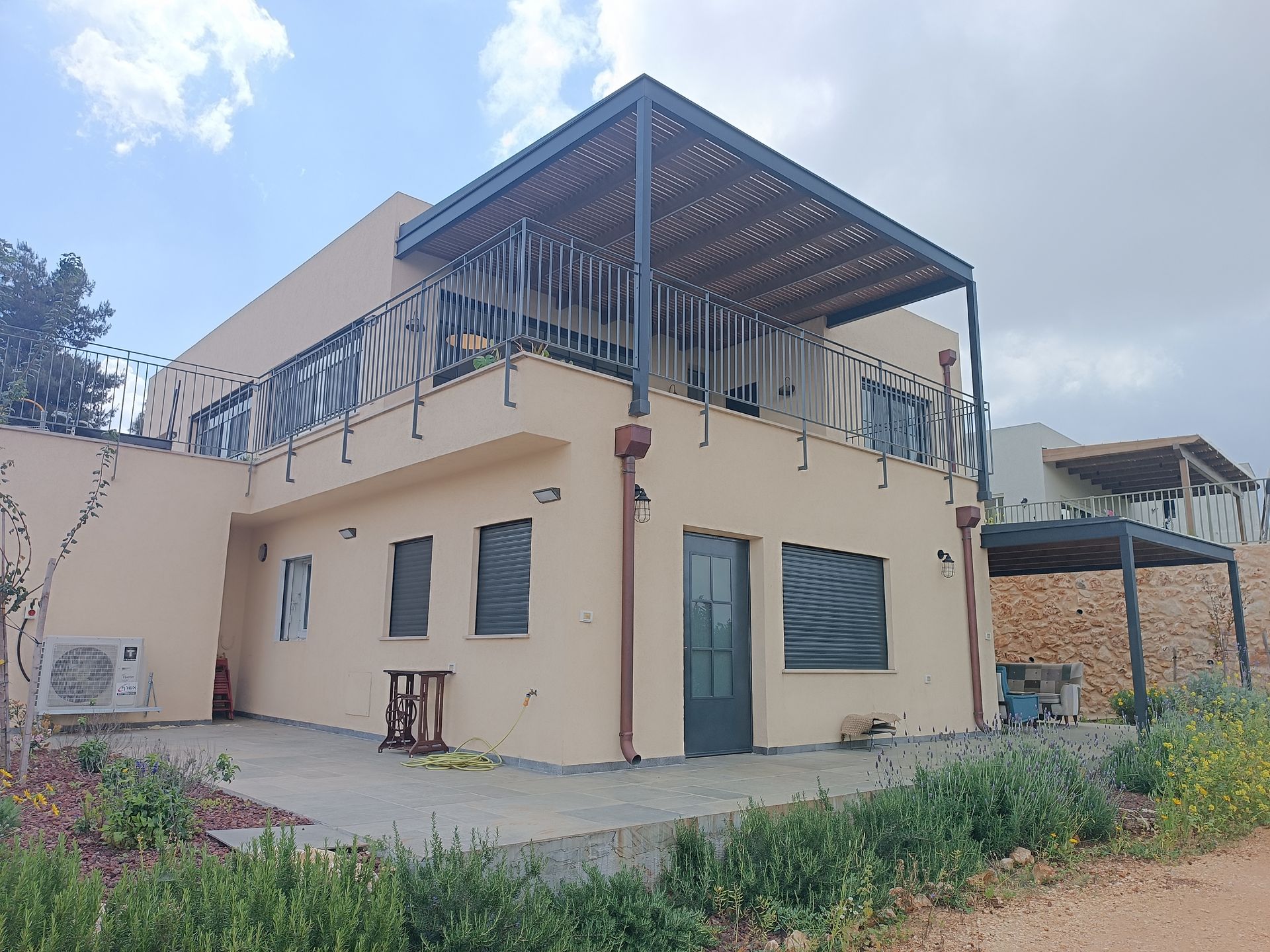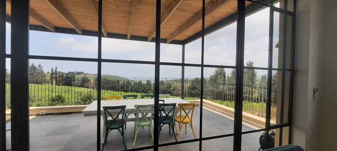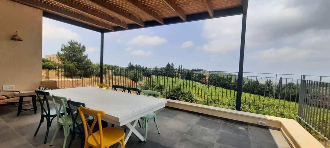 חדר ההורים והמרפסת הגדולה פונים אל נוף מטעים מרהיב עם חלונות גדולים בכל הבית שמכניסים את הירוק והאוויר הצח של הגליל אל פנים הבית.