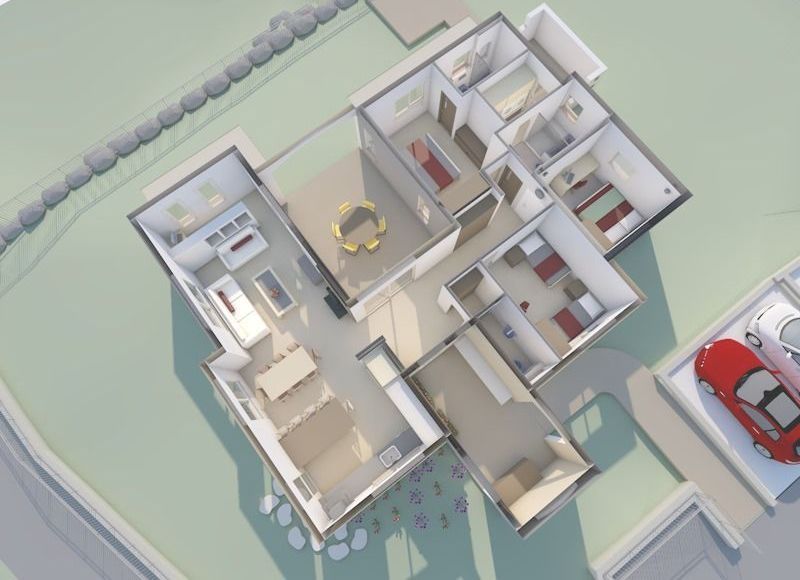 * בית צנוע, קומה אחת, אדמתי ולא מתרברב אשר מכיל את החדרים שאנו זקוקים לכם כיום ומאפשר התרחבות עתידית עם התרחבות המשפחה אם יהיה צורך